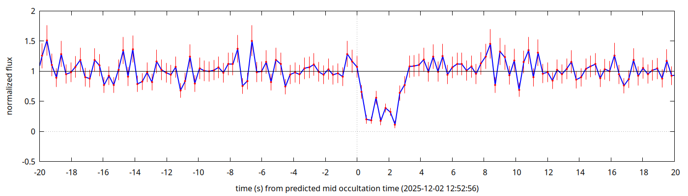 Another observation campaign in the context of the GaiaMoons project. On September 11, 2025, asteroid (858) El Djezair passed in front of a star of magnitude 11.1. The shadow of the asteroid went over France at about 0:49 UT, that is, 2:49 local time (cf. map of the GaiaMoons project).